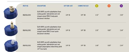 所述BQ45GL是一系列包含一個整體工廠安裝的快速斷開或嵌合,將適合任何瓶(玻璃或塑料)與45毫米頸部開口和GL螺紋瓶蓋。