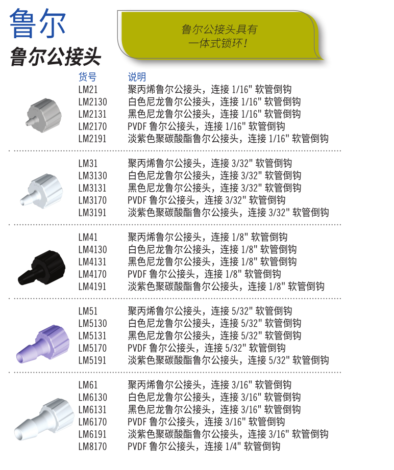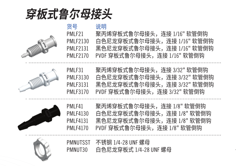 Luer Connectors are a common choice for limited use or disposable applications where a shutoff valve is not required. Fittings Express luer fittings are suitable for small flow applications, typically less than 1/4", and feature parting line-free hose barbs. They mate with luers manufactured to ISO Standards 594-1 and 594-2 and are the preferred choice when looking for high quality, precision molded fluid components.
